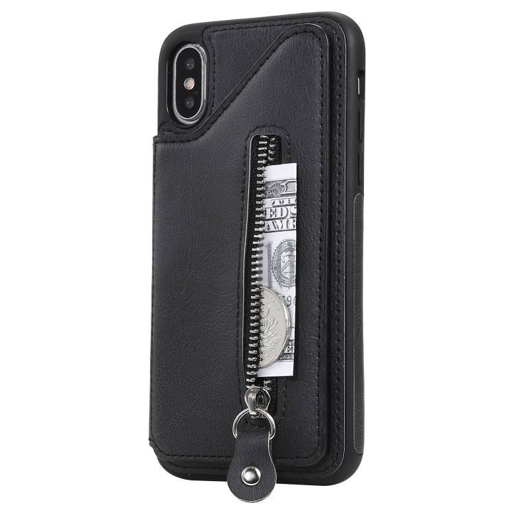 Funda Protectora para iPhone X Doble Hebilla Cremallera a Prueba de Golpes (Negro)