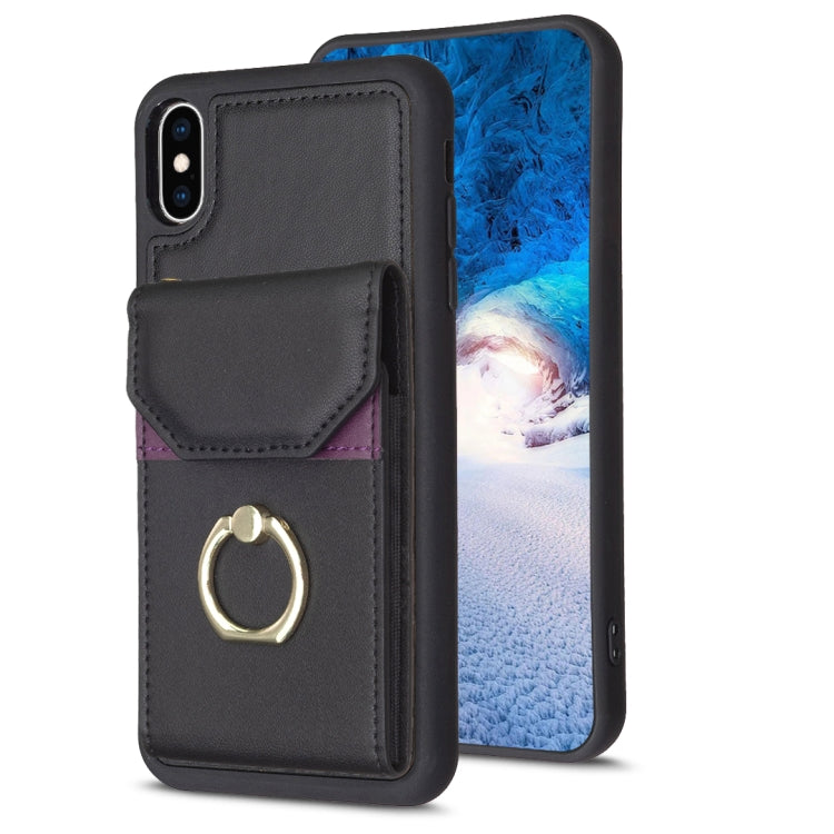 Funda para Teléfono Bf29 para iPhone X y Xs con Soporte para Anillo y Bolsa para Tarjeta (Negro)
