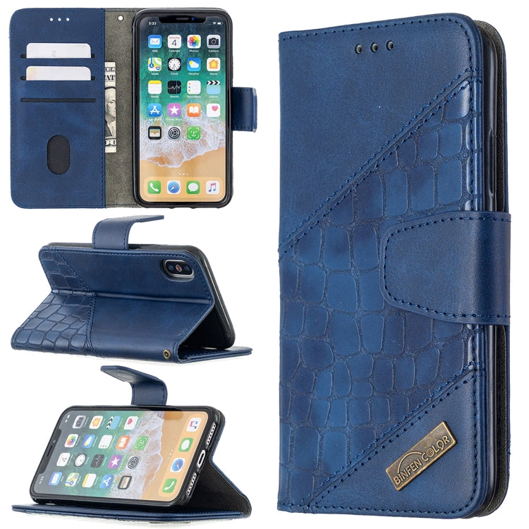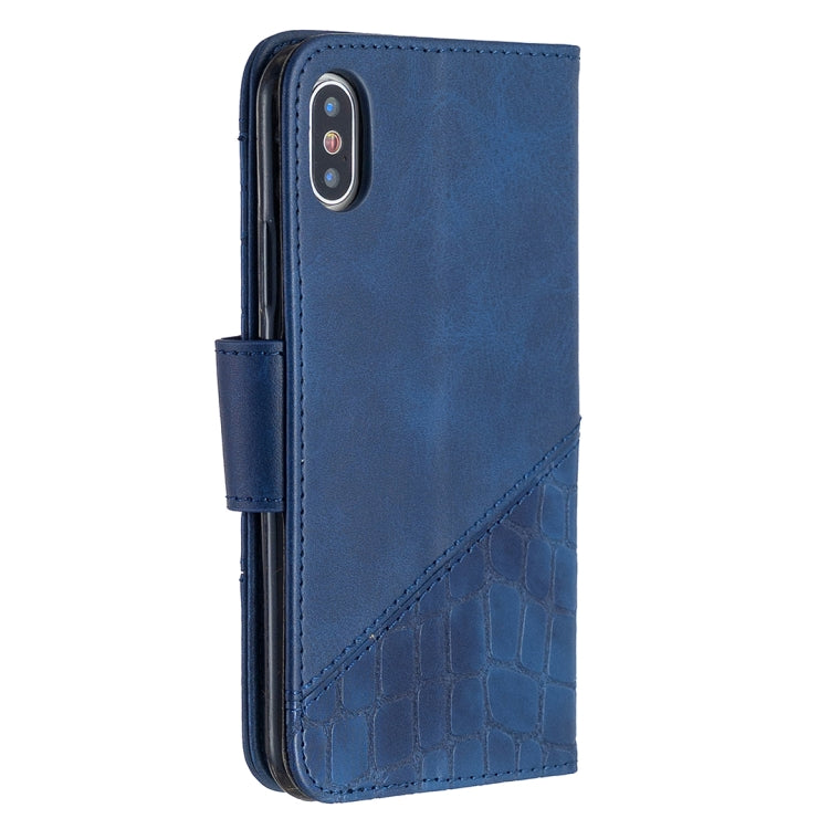 Funda de Cuero de Pu para iPhone X Xs Textura de Cocodrilo con Tapa Horizontal Billetera Soporte y Ranuras para Tarjetas (Azul)
