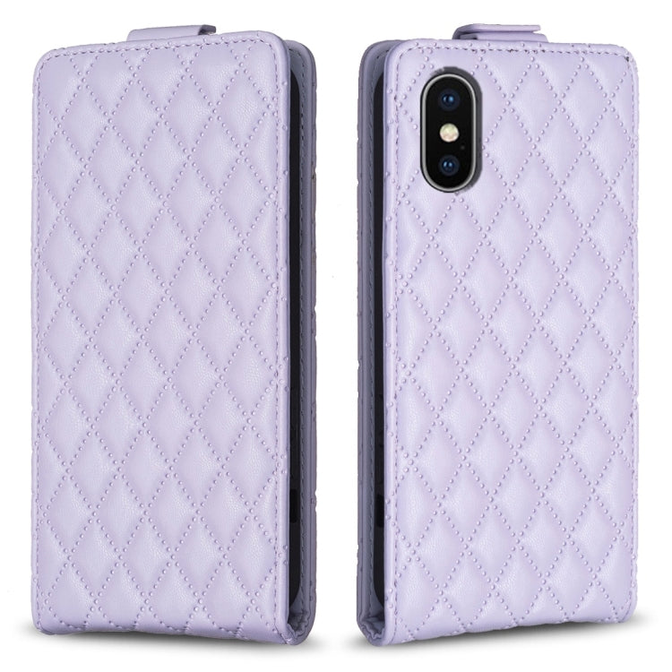 Funda de Cuero para iPhone X Xs Diamond Lattice con Tapa Vertical (Púrpura)