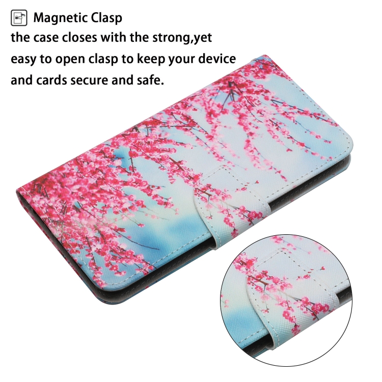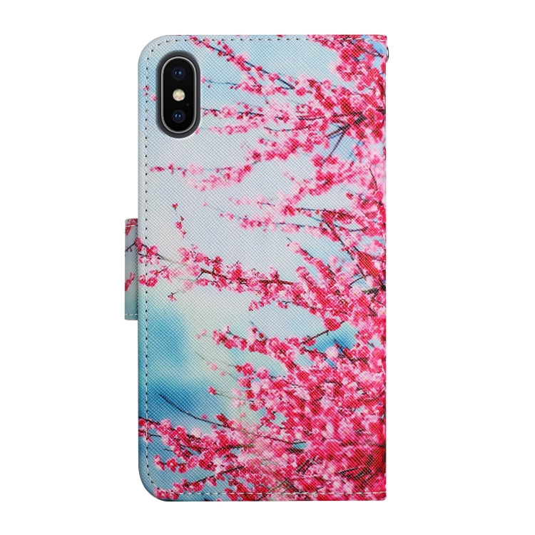 Estuche de Cuero para iPhone X Xs con Tapa Horizontal Soporte Ranura Tarjeta Billetera (Flores de Cerezo Rojas)
