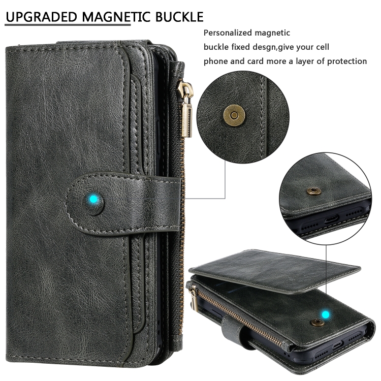 Estuche de Cuero para iPhone X Xs con Tapa Horizontal Magnética Desmontable Multifuncional Ranuras Tarjetas Soporte Billetera Marco Fotos (Verde Oscuro)