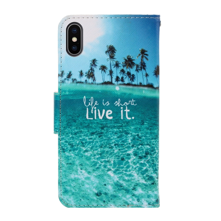Estuche de Cuero PU para iPhone X Xs con Tapa Horizontal Dibujo 3D Soporte y Ranuras (Árbol de Coco)