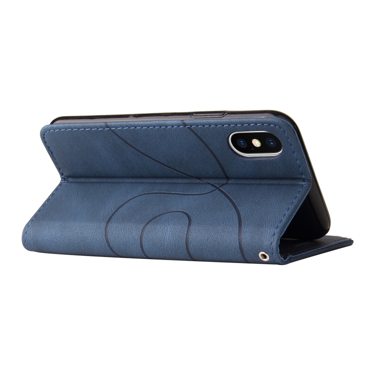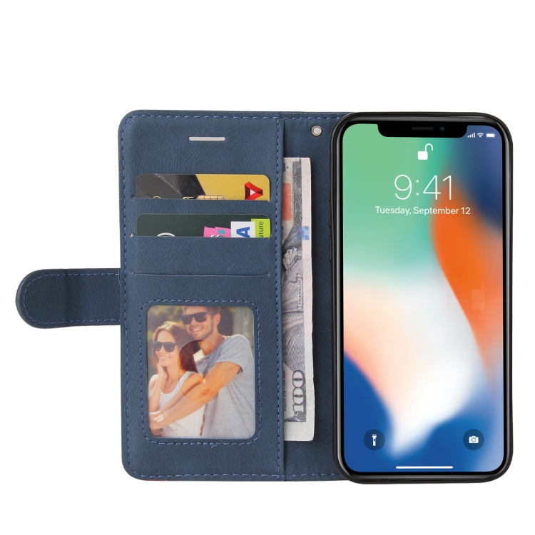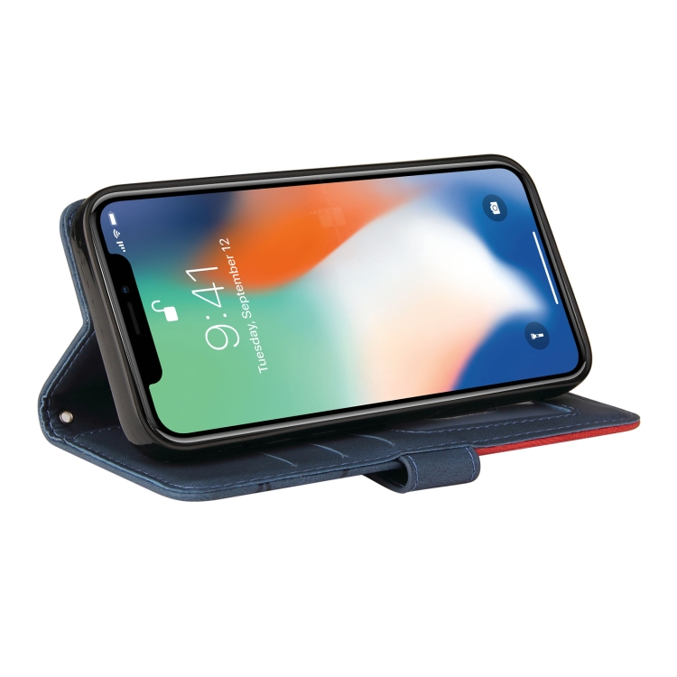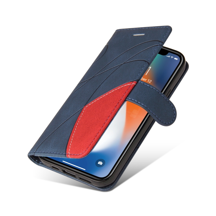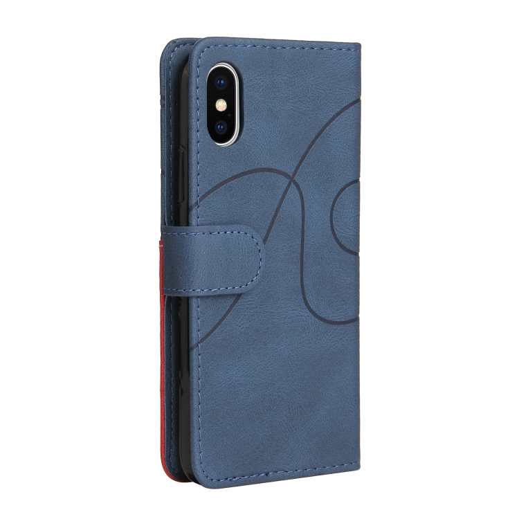 Estuche para iPhone X Xs Cuero de Pu Tapa Horizontal Empalme Dos Colores Soporte Ranuras Tarjetas Billetera (Azul)