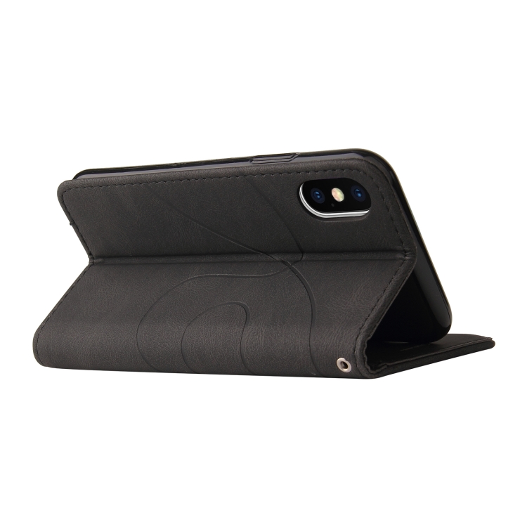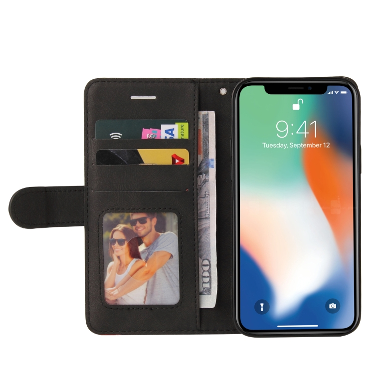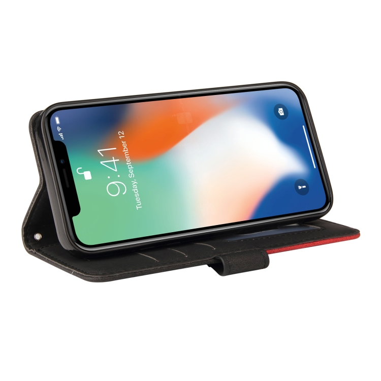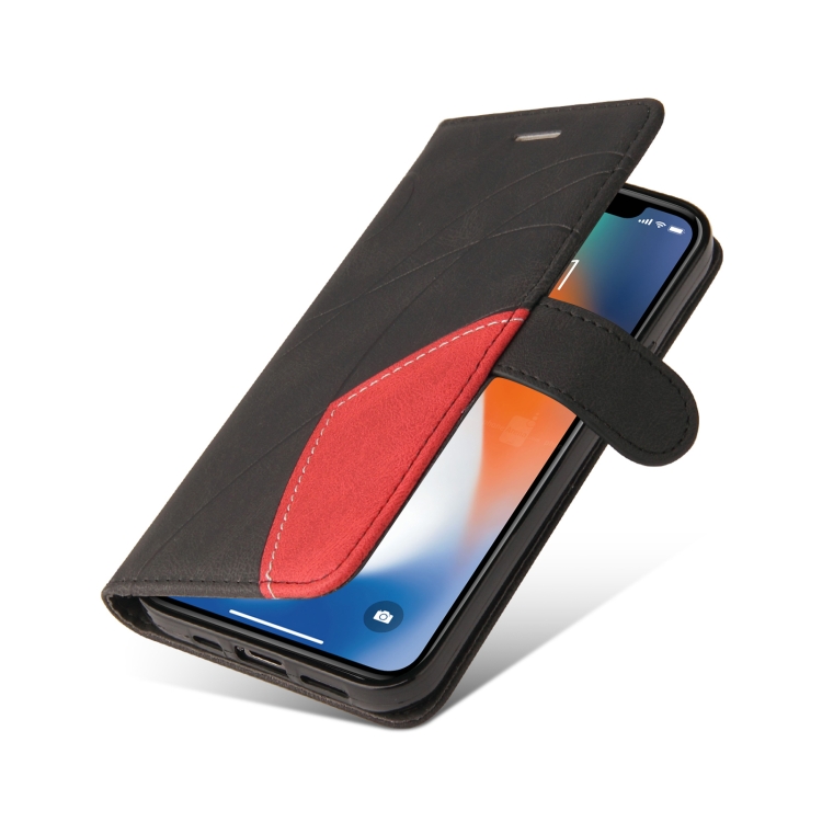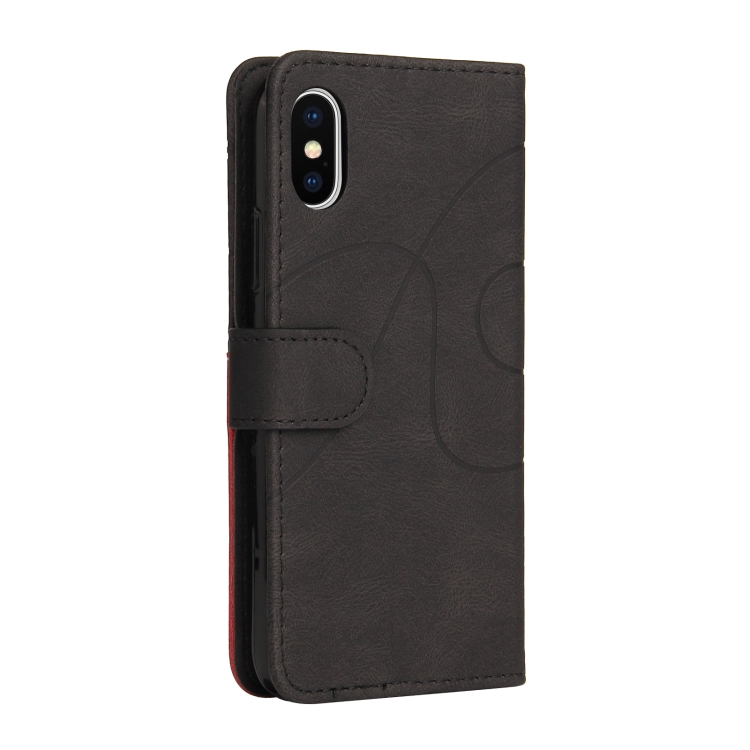 Estuche de Cuero PU para iPhone X Xs Tapa Horizontal Empalme Dos Colores Soporte Ranuras Tarjetas Billetera (Negro)