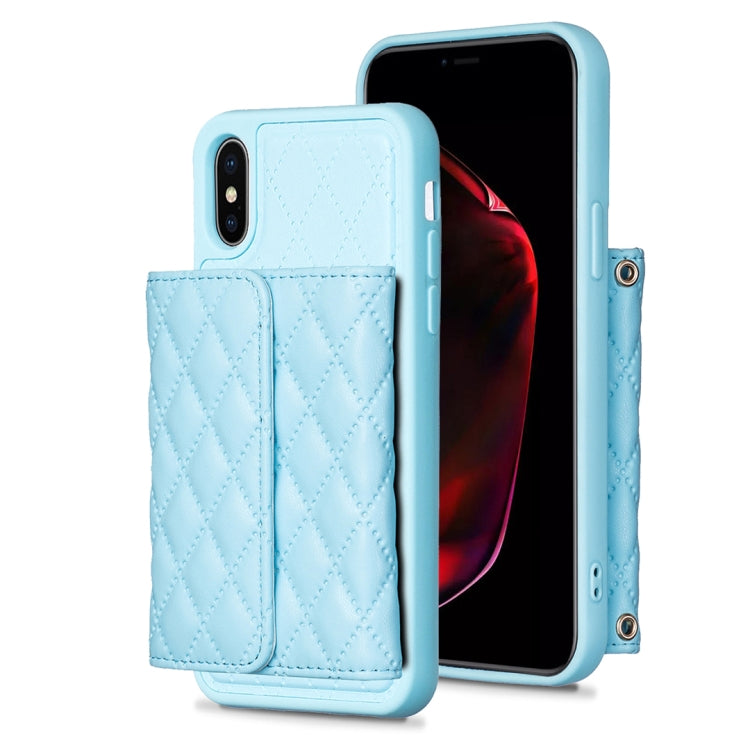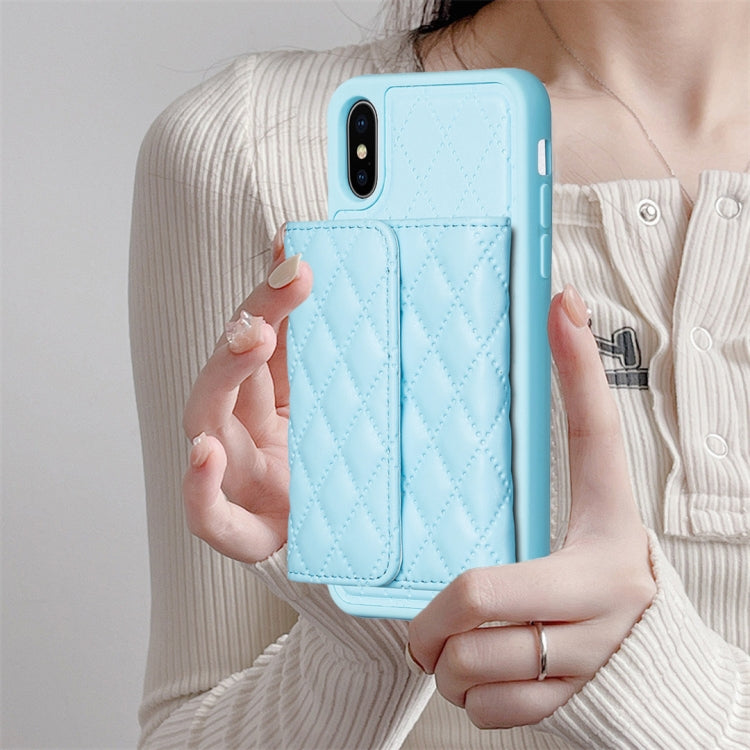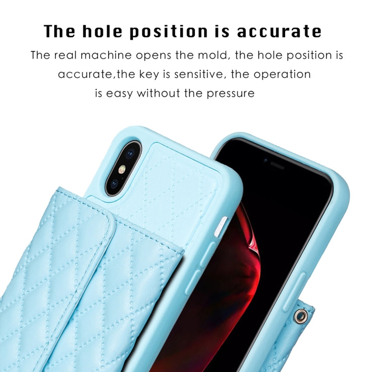 Estuche de Teléfono iPhone X / Xs Cuero Rómbico con Billetera Horizontal (Azul)