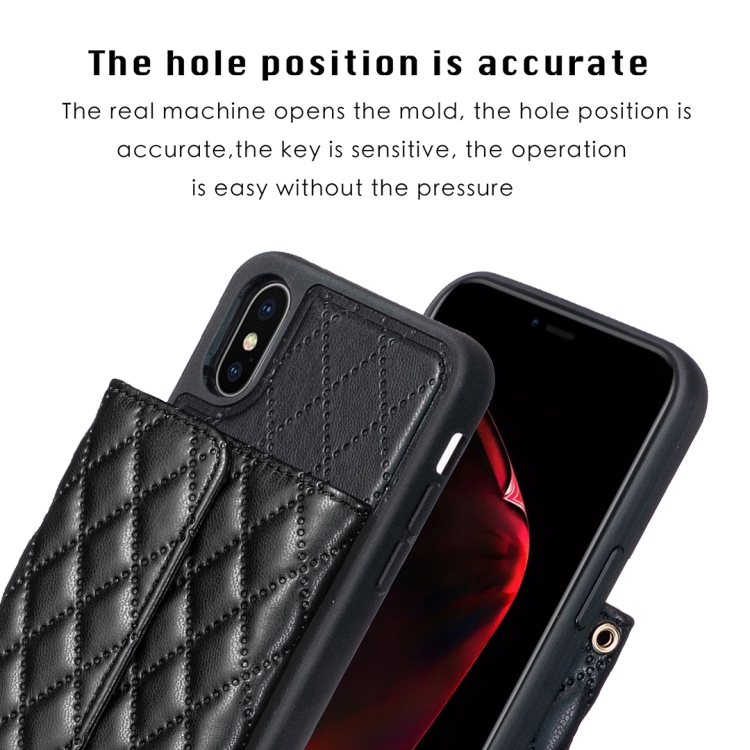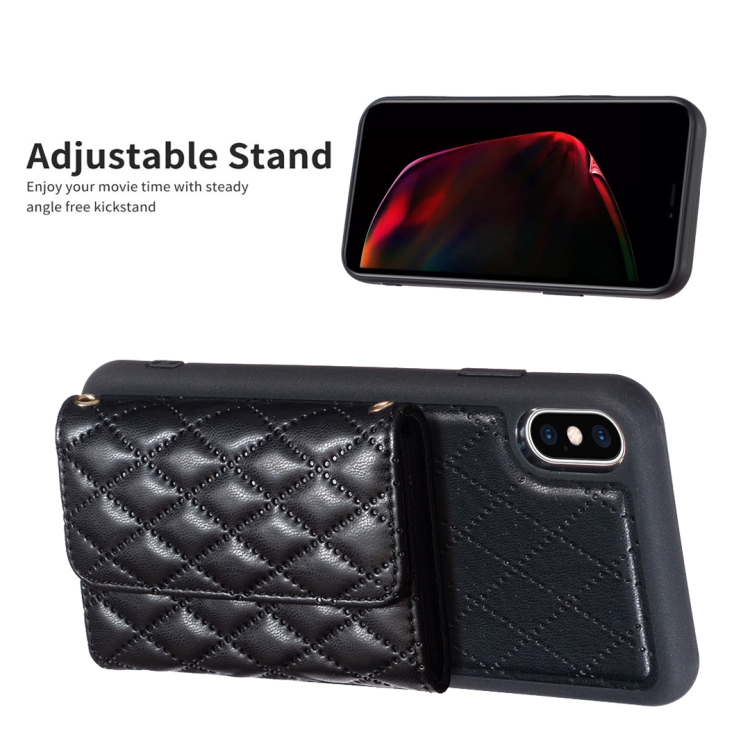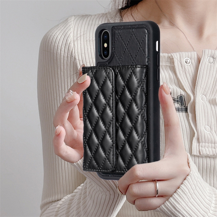 Estuche de teléfono iPhone X Xs Cuero Rómbico con Billetera Horizontal (Negro)