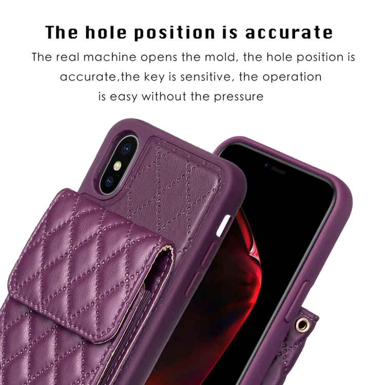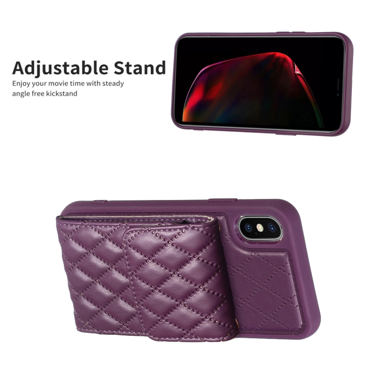 Estuche de Teléfono iPhone X / Xs Cuero Rómbico con Billetera Vertical (Púrpura Oscuro)