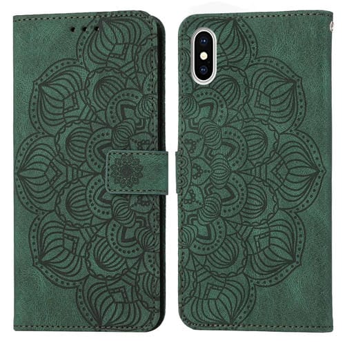 Estuche para Teléfono iPhone X / Xs Cuero con Tapa En Relieve Mandala (Verde)