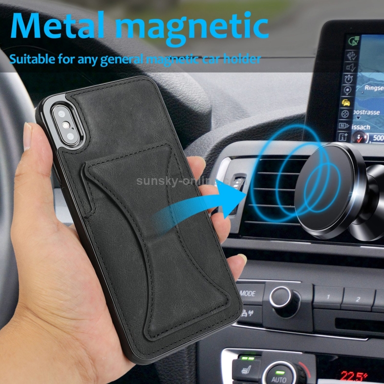 Estuche Protector para iPhone X Xs Ultrafino Prueba de Golpes Soporte Función Magnética (Negro)
