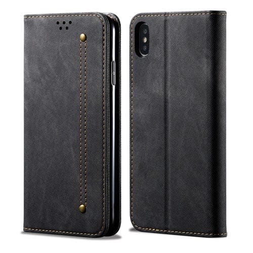 Funda para iPhone X / Xs Cuero con Tapa Horizontal Estilo Informal Textura Mezclilla Soporte Ranuras Tarjetas Billetera (Negro)