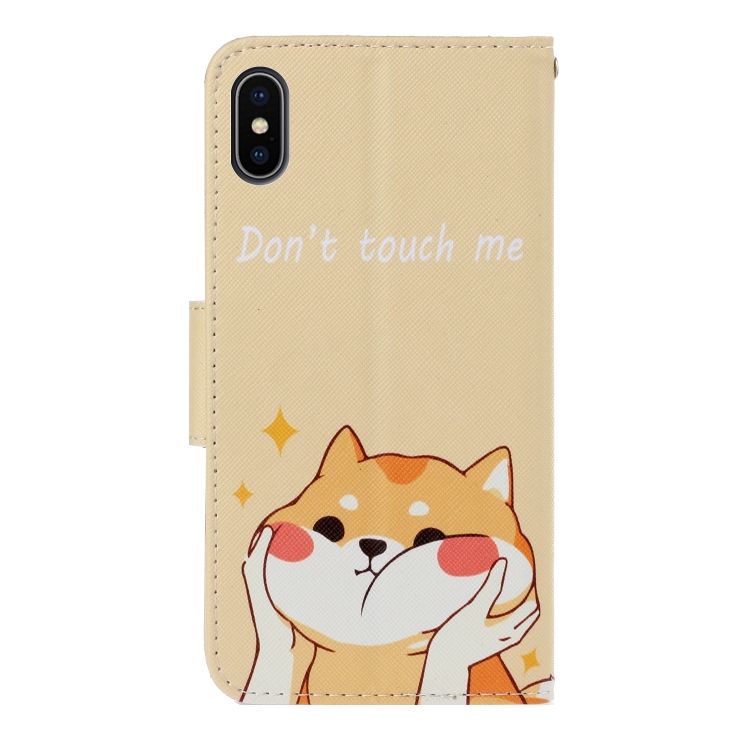 Funda de Cuero Pu para iPhone X Xs con Tapa Horizontal Dibujo 3D Soporte Ranuras Tarjetas Billetera (Shiba Inu)