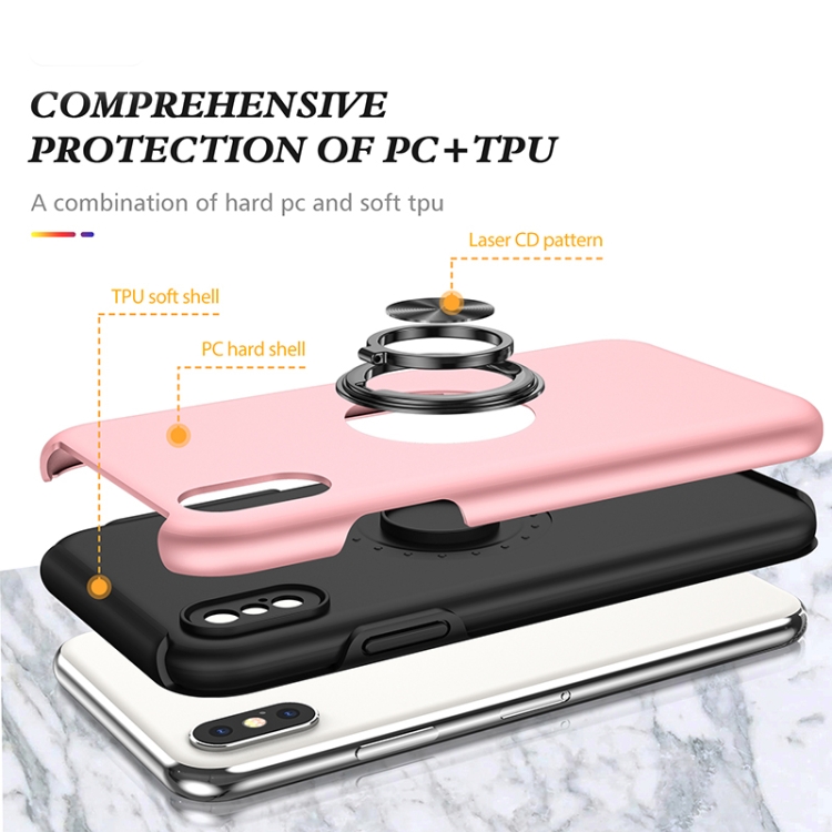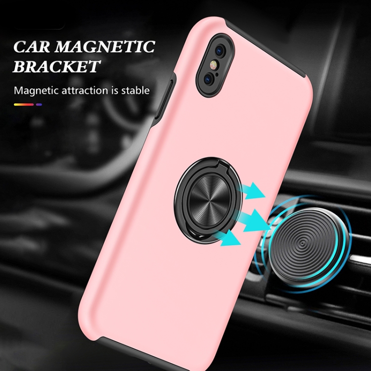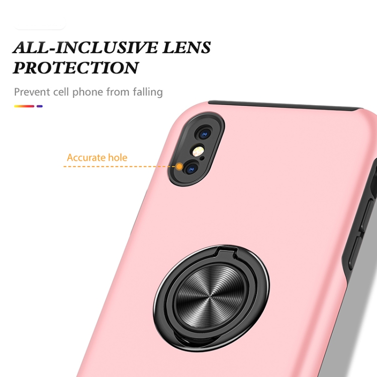 Funda de Teléfono para iPhone X Xs a Prueba de Golpes con Soporte de Anillo Magnético (Oro Rosa)