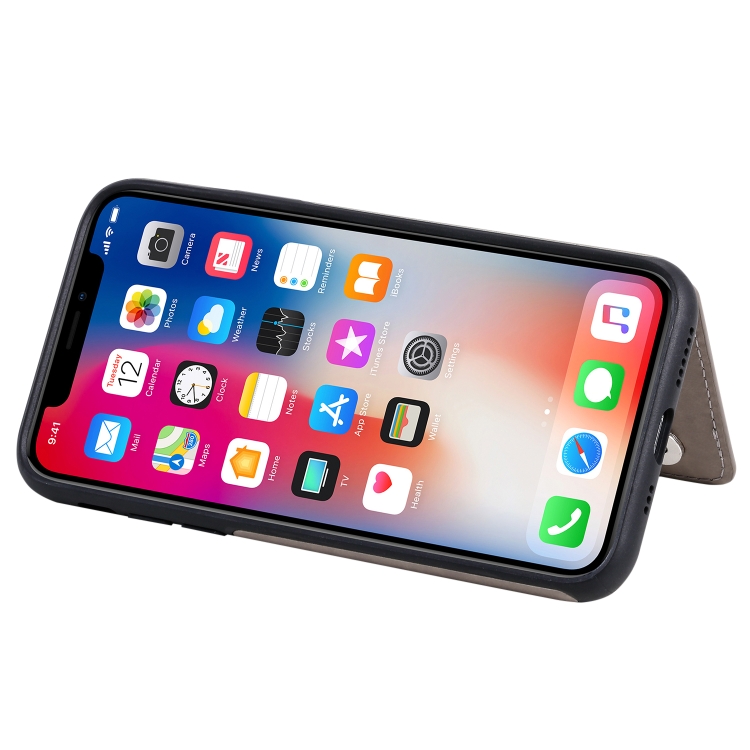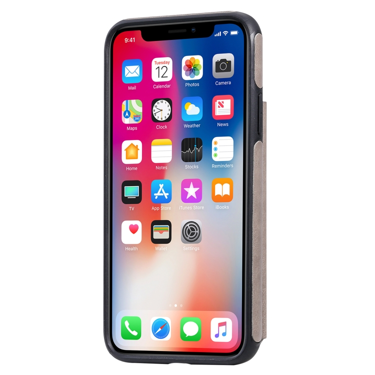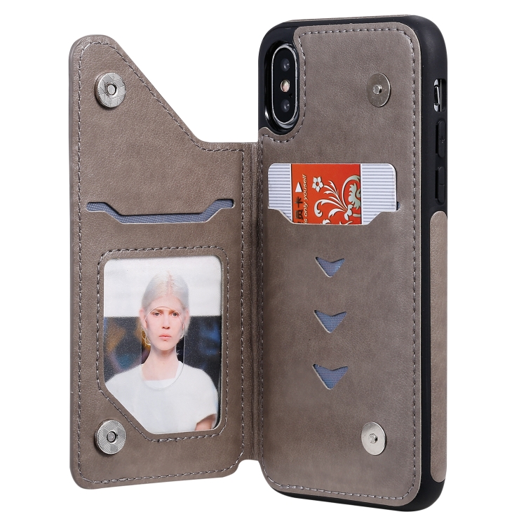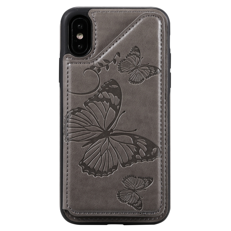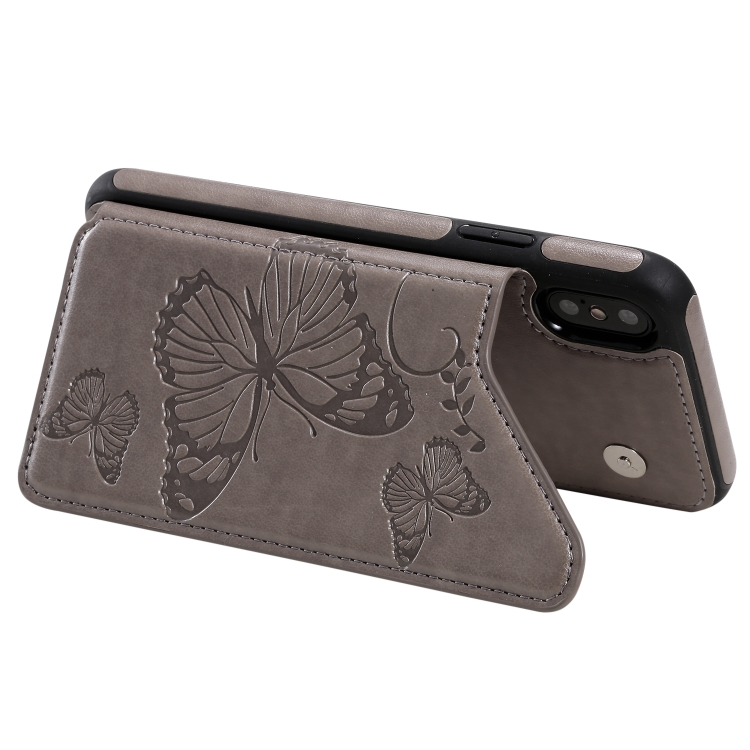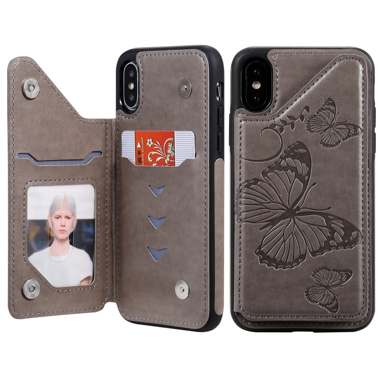 Funda Protectora iPhone X y Xs Estampado Mariposas Soporte Ranuras Tarjetas Marco Fotos (Gris)