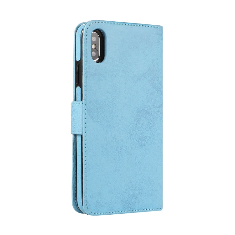 Funda para iPhone X / Xs Klt888-2 Retro 2 en 1 Cuero TPU + PU con Tapa Horizontal Magnética Desmontable Soporte Ranuras Tarjetas Marco Fotos Billetera (Azul Cielo)