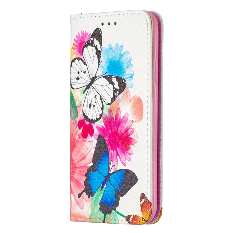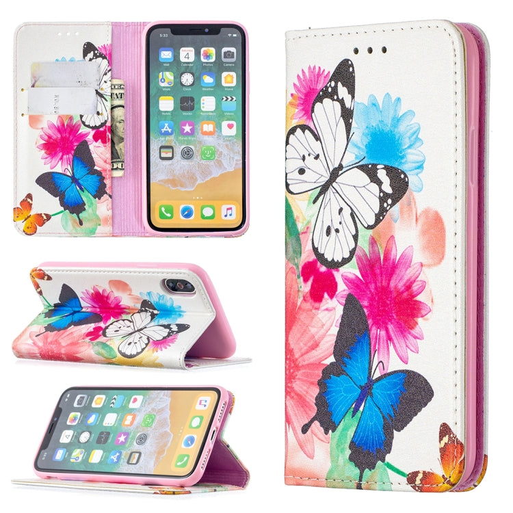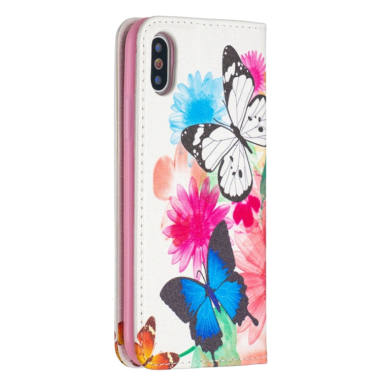 Estuche de Cuero PU para iPhone X Xs con Tapa Horizontal Magnética Soporte Ranuras Tarjetas Billetera (Dos Mariposas)