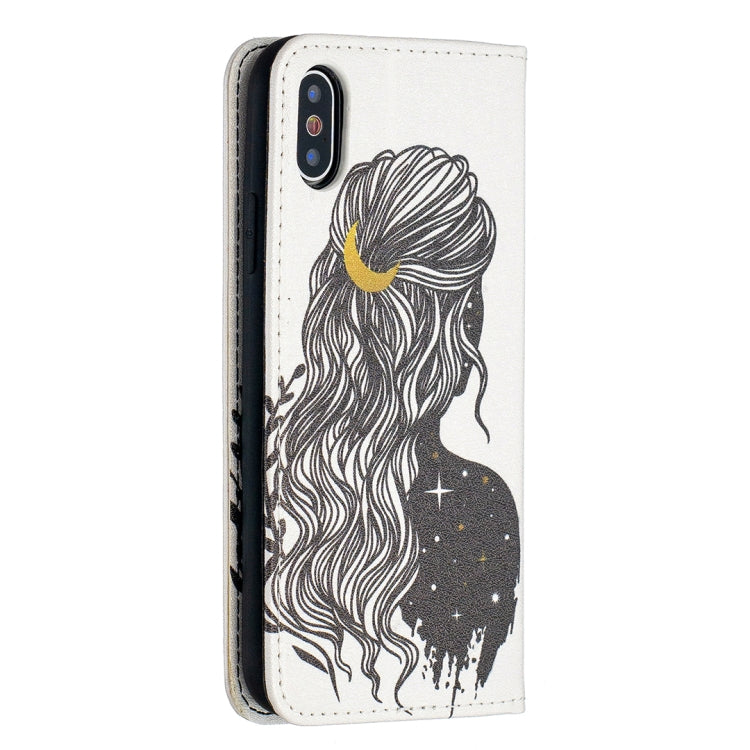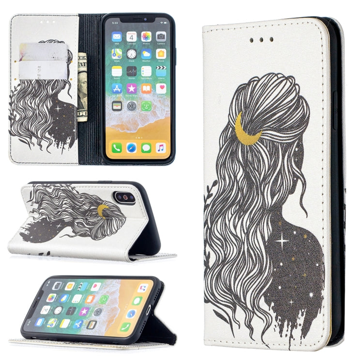 Estuche de Cuero PU para iPhone X Xs con Patrón de Dibujo a Color, Tapa Horizontal Magnética, Soporte y Ranuras para Tarjetas (Niña)