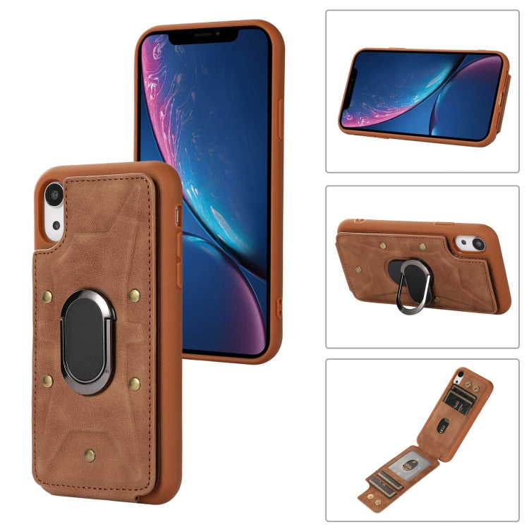 Funda Trasera Armor Ring Wallet para iPhone Xr (Marrón)
