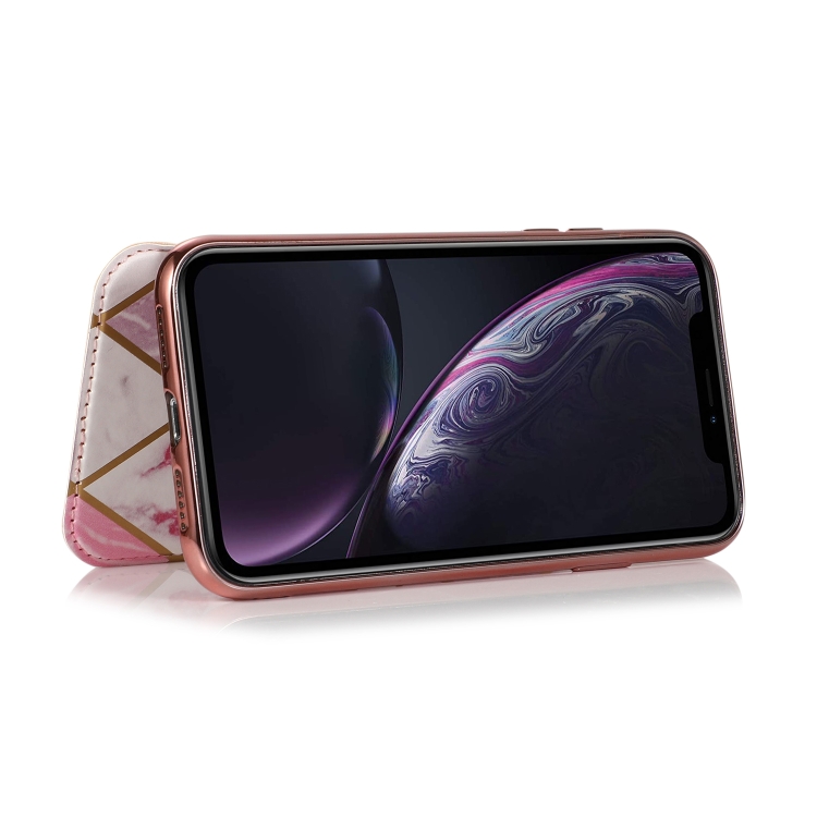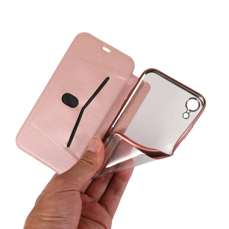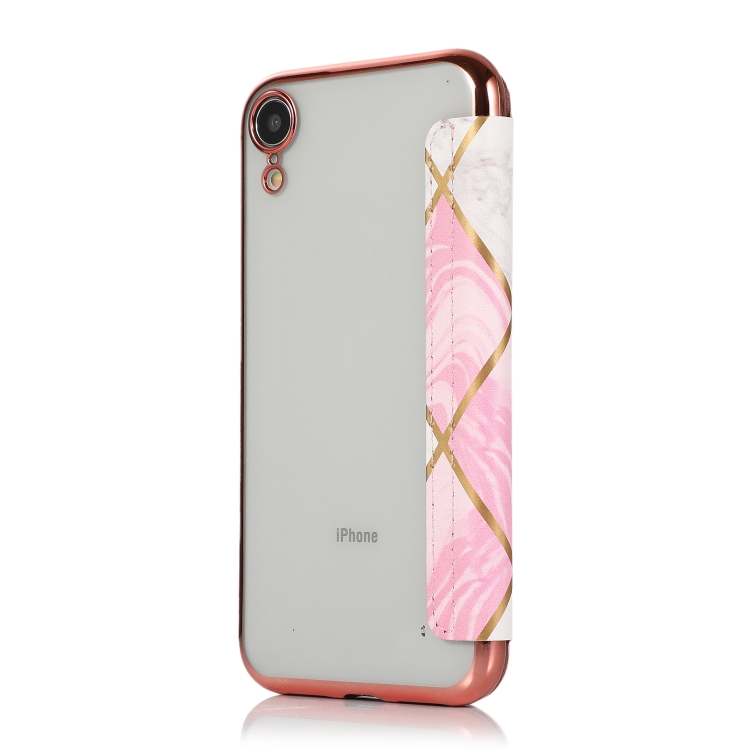 Estuche de Cuero para iPhone Xr Bronceado PU + TPU con Tapa Horizontal Soporte y Ranura para Tarjeta (Rosa Blanco)