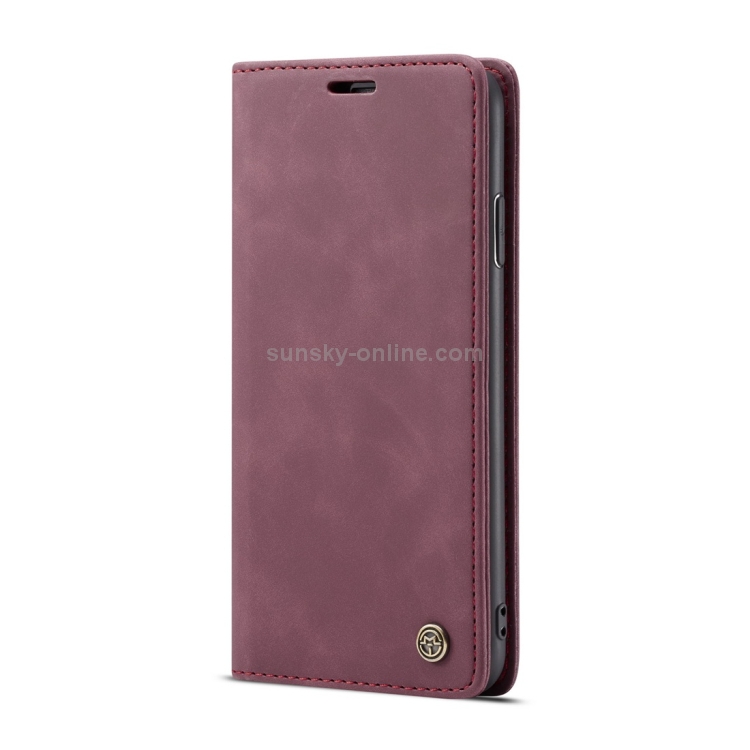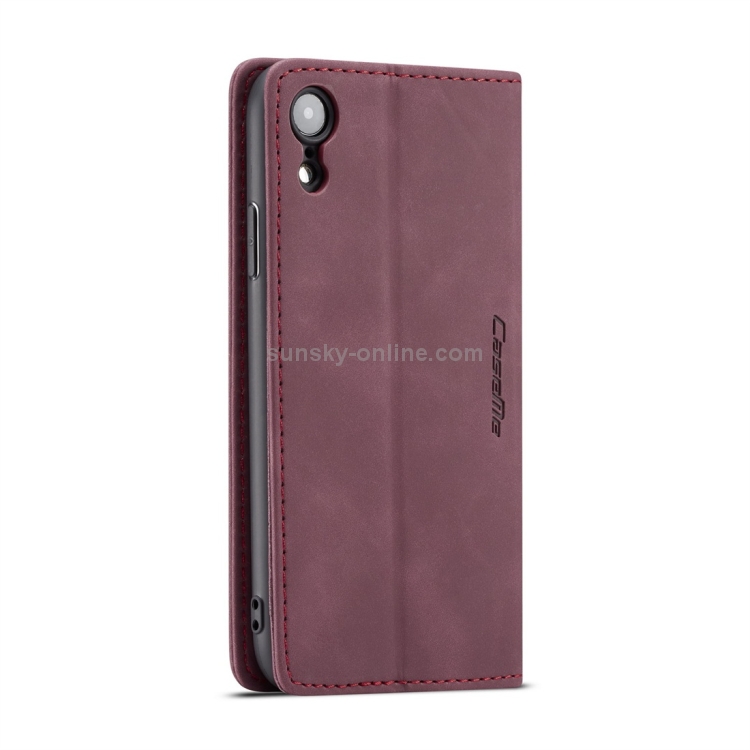 Funda de Cuero Caseme-013 para iPhone Xr con Tapa Horizontal Esmerilada, Ranura para Tarjeta, Soporte y Billetera (Rojo Vino)