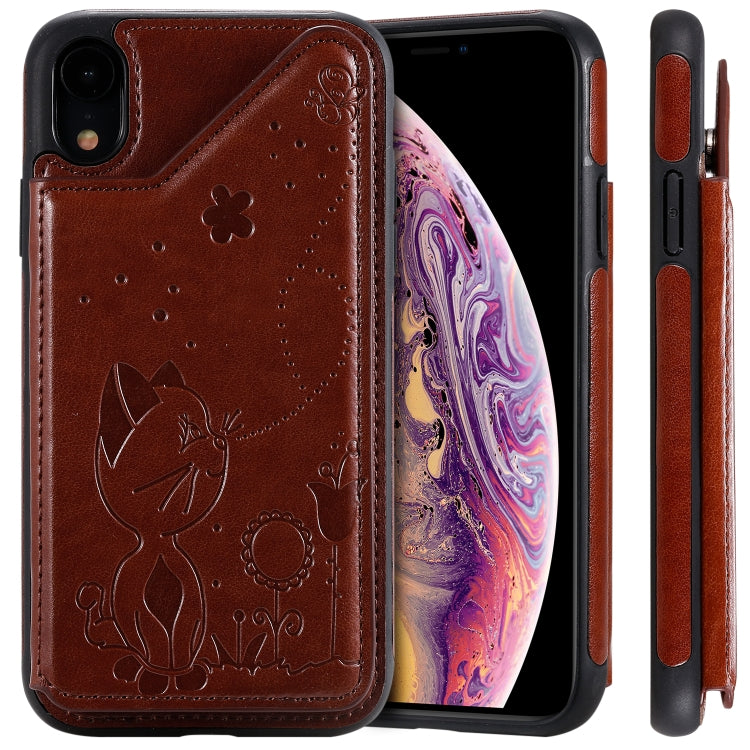 Estuche protector para iPhone Xr Cat Bee relieve patrón a prueba de golpes con ranuras para tarjetas y marco de fotos (Marrón)