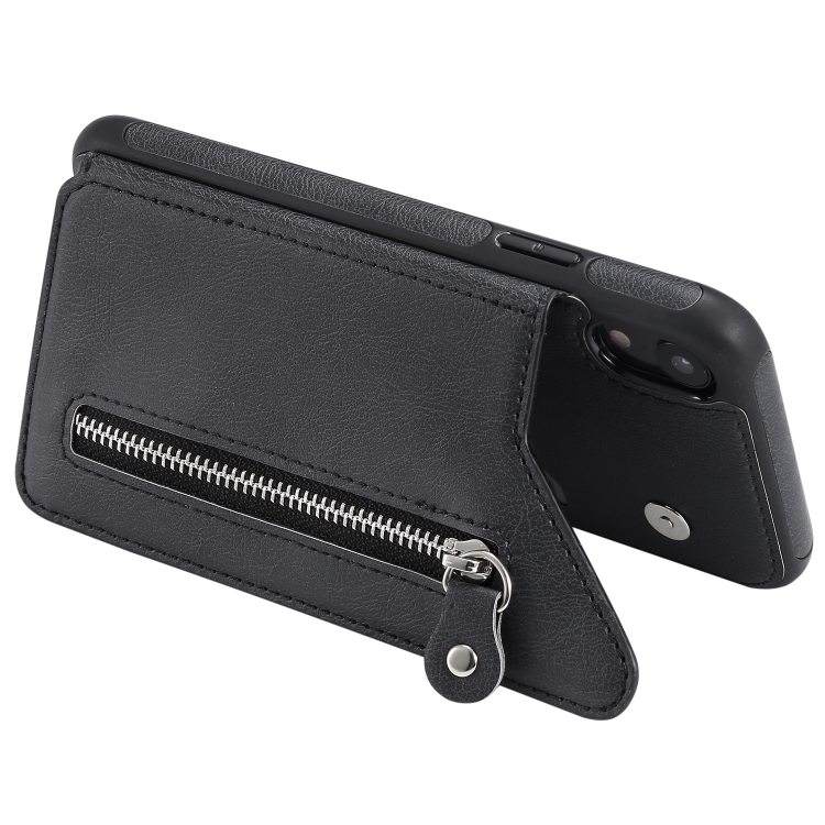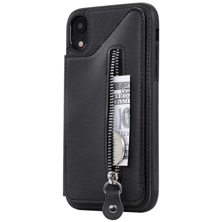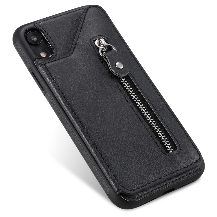 Funda Protectora para iPhone Xr Doble Hebilla Cremallera a Prueba de Golpes (Negro)