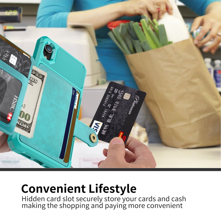 Estuche de Cuero para iPhone Xr Billetera Magnética para Tarjeta (Cian)