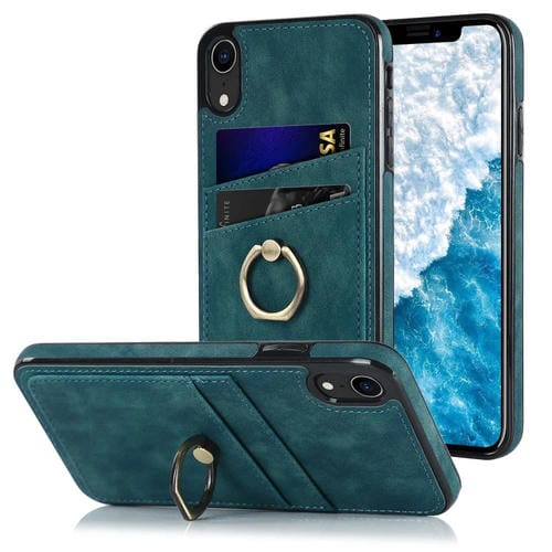 Estuche para Teléfono iPhone Xr Cuero Parche Vintage Soporte para Anillo (Azul)
