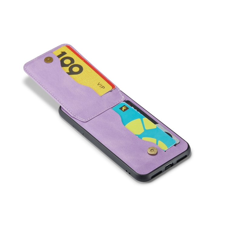 Funda para iPhone Xr Fierre Shann Crazy Horse Card Holder Contraportada Pu (Púrpura)