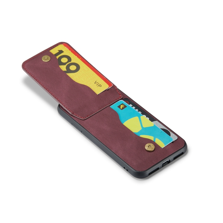 Funda para Teléfono Fierre Shann Crazy Horse iPhone Xr Tarjetero Contraportada (Rojo Vino)