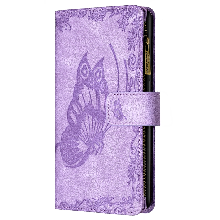 Funda de Cuero para iPhone Xr Flying Butterfly Patrón de Relieve con Cremallera Flip Horizontal Soporte Tragamonedas Billetera (Púrpura)