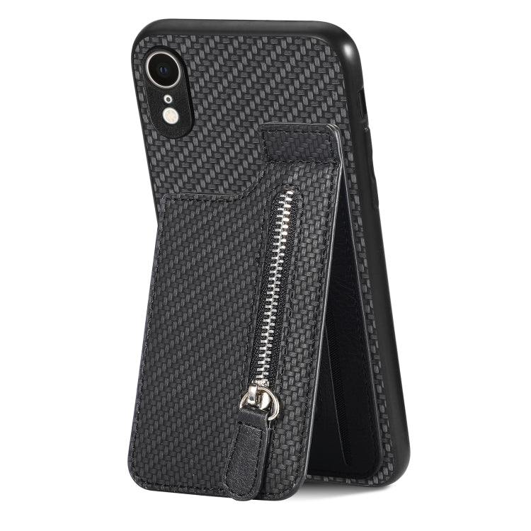 Funda de Teléfono para iPhone Xr con Cremallera Vertical de Fibra de Carbono (Negro)