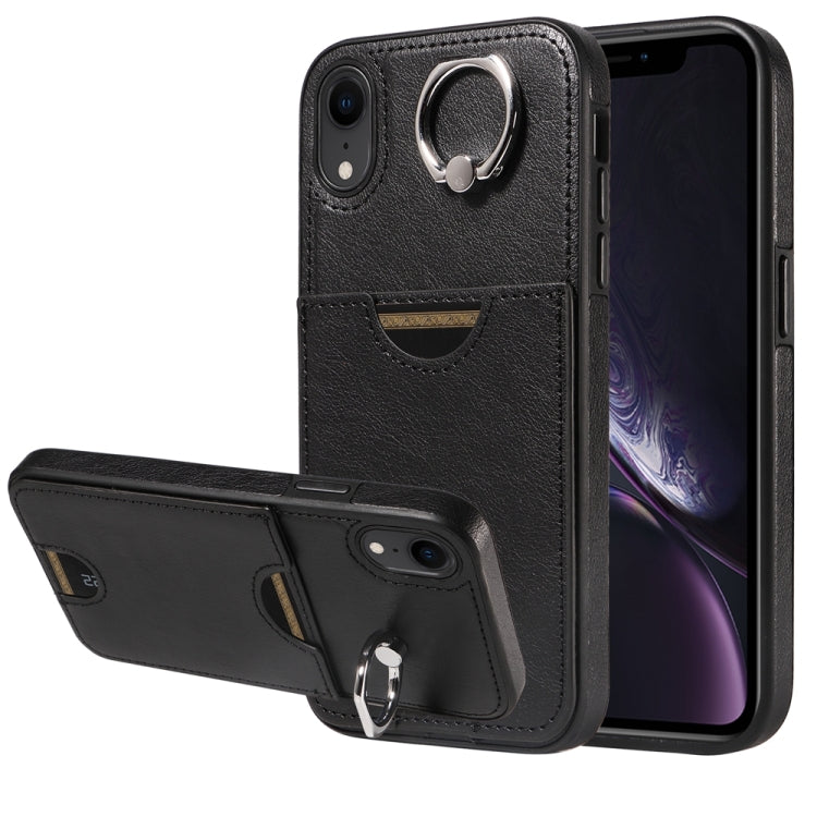 Funda para Teléfono para iPhone Xr con Soporte para Anillo y Ranura para Tarjeta (Negro)