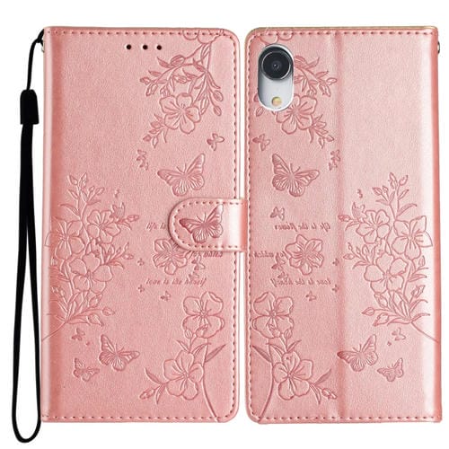 Funda para Teléfono iPhone Xr Cuero Relieve Flor Amor y Mariposa (Oro Rosa)