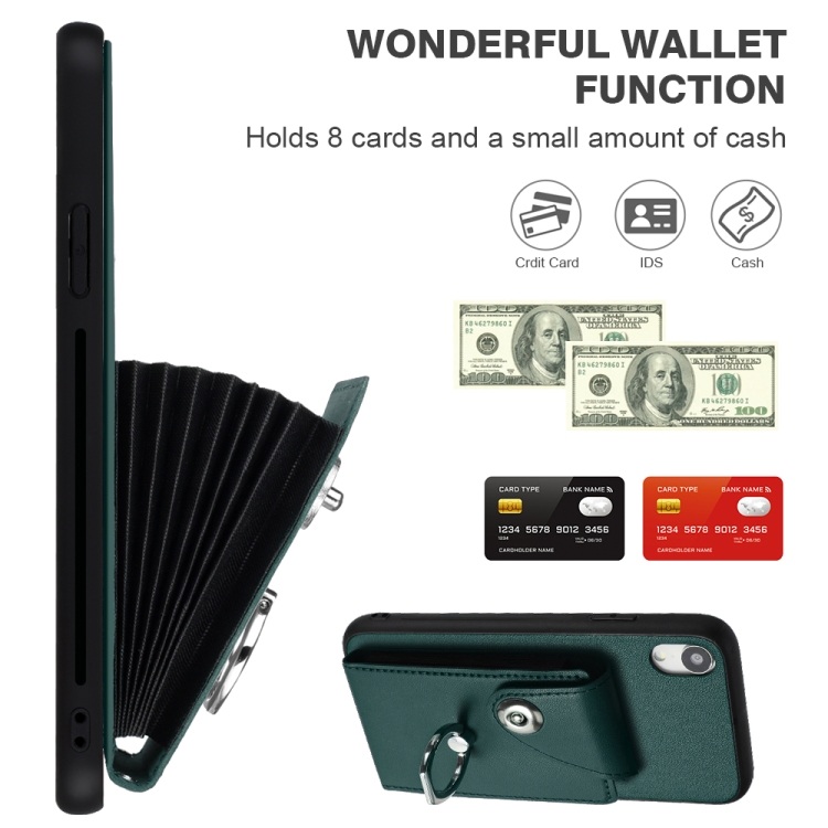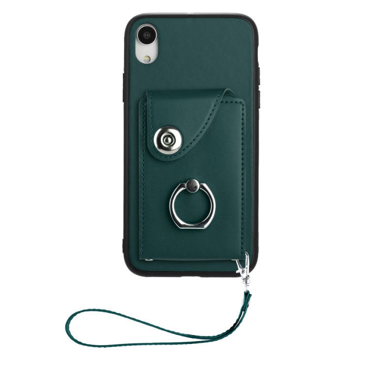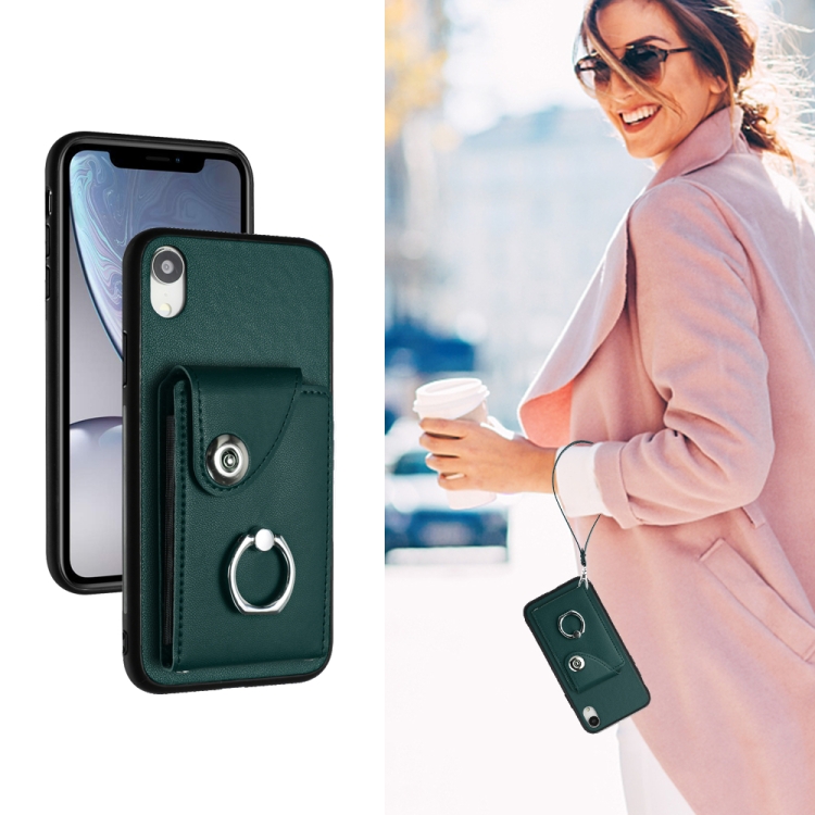 Funda para Teléfono iPhone Xr PU Soporte Anillo Bolsa Tarjeta Cordón (Verde)