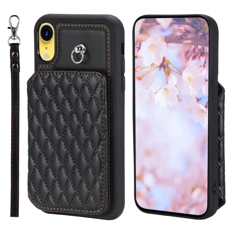 Funda para Teléfono iPhone Xr Grid Texture Card Bag con Cordón (Negro)