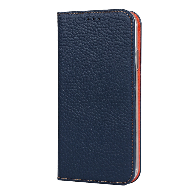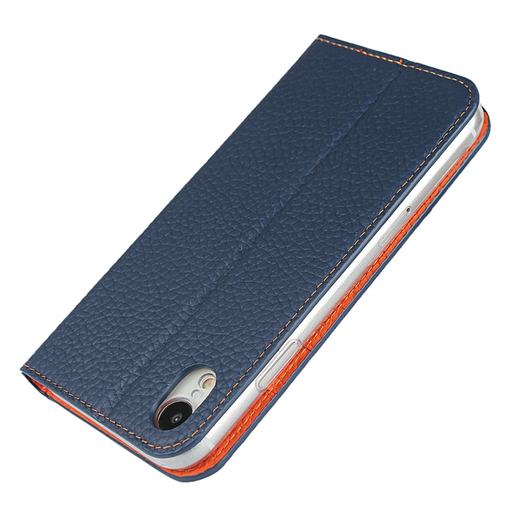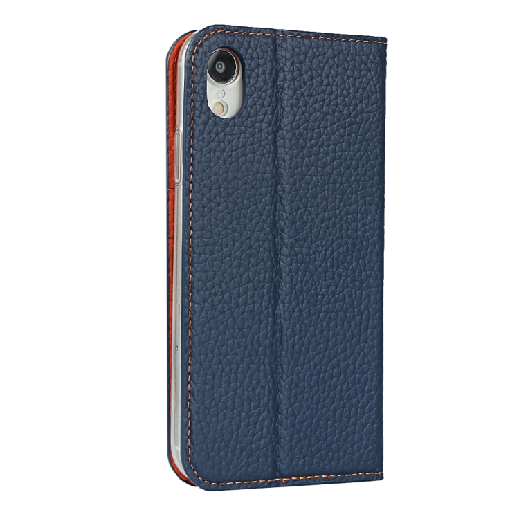 Funda de Teléfono iPhone Xr Litchi Cuero Genuino (Azul Oscuro)
