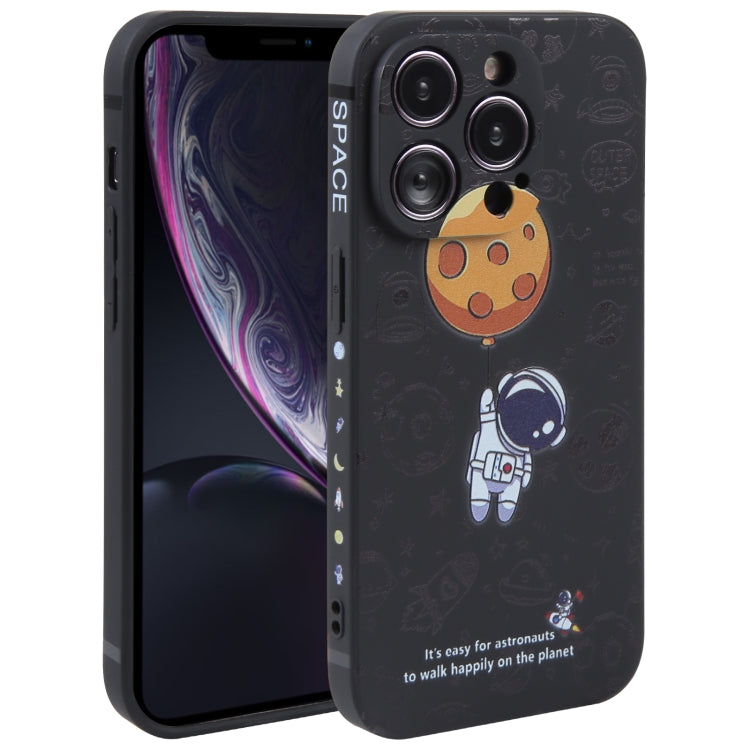 Funda de Teléfono iPhone Xr Patrón Astronauta Silicona Borde Recto (Planet Landing-Black)