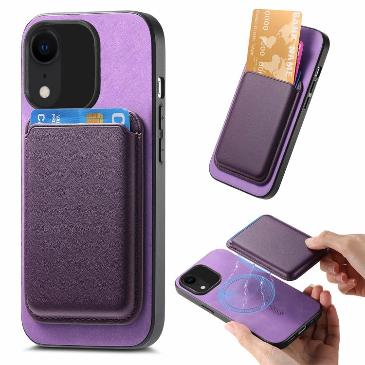 Funda para Teléfono iPhone Xr Retro Magsafe Card Bag Pu con Contraportada (Púrpura)