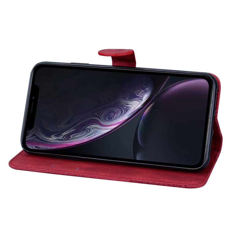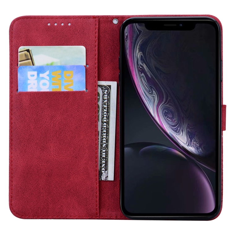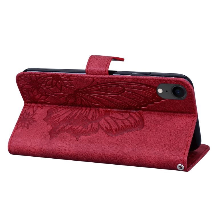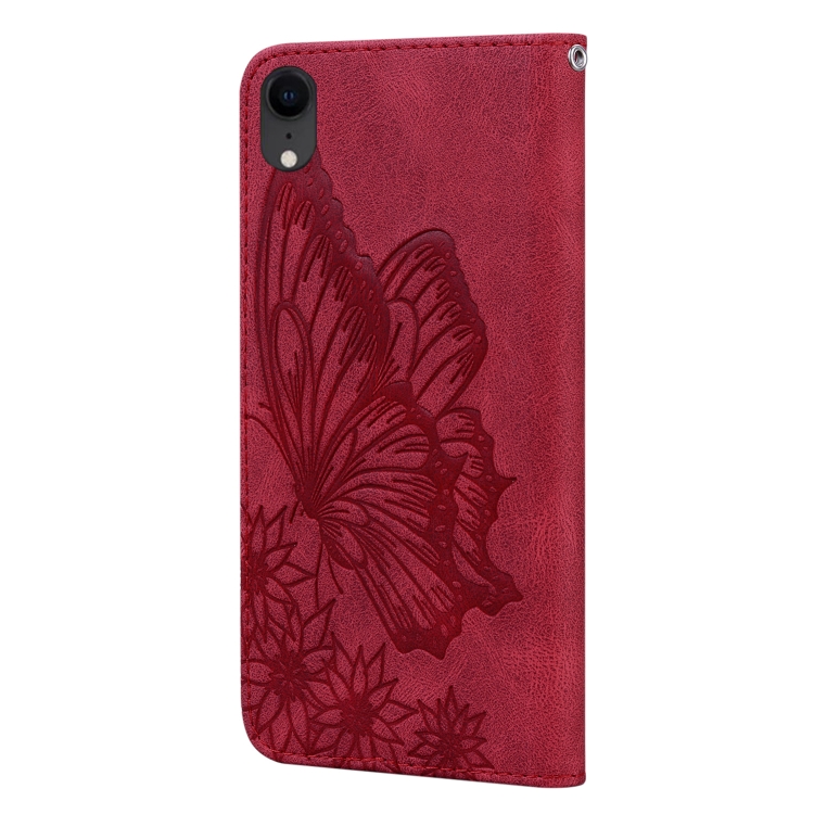 Estuche para iPhone Xr Retro Skin Feel Butterflies Cuero con Tapa Horizontal En Relieve Soporte Ranuras Tarjetas Billetera (Rojo)