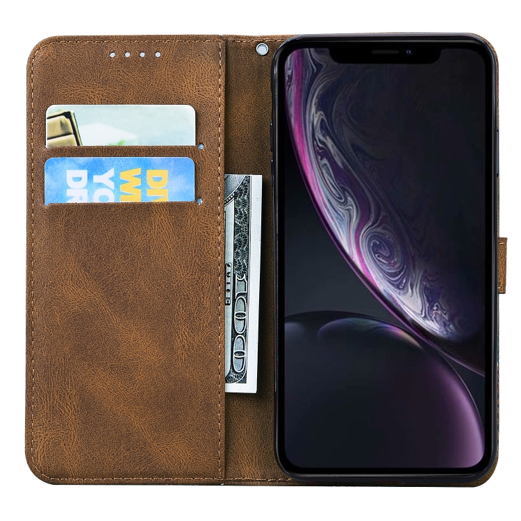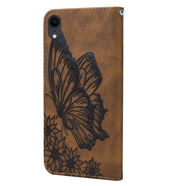 Funda para iPhone Xr Retro Skin Feel Butterflies Cuero con Tapa Horizontal Soporte y Ranuras para Tarjetas y Billetera (Marrón)