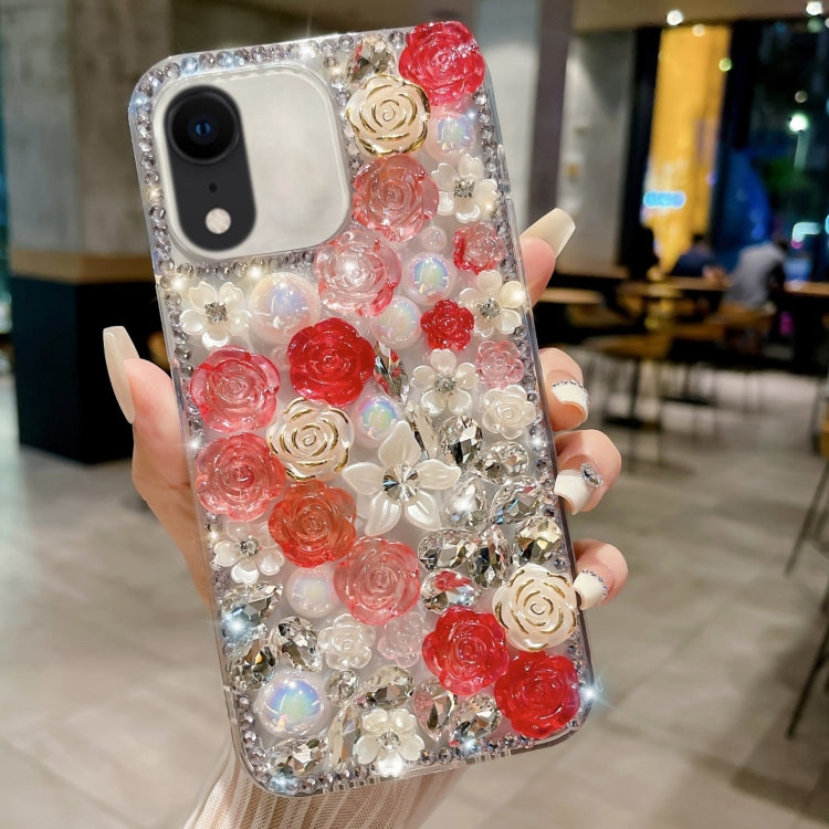 Funda para Teléfono iPhone Xr Rose Hand-Set Pearl Diamond PC (Rojo)
