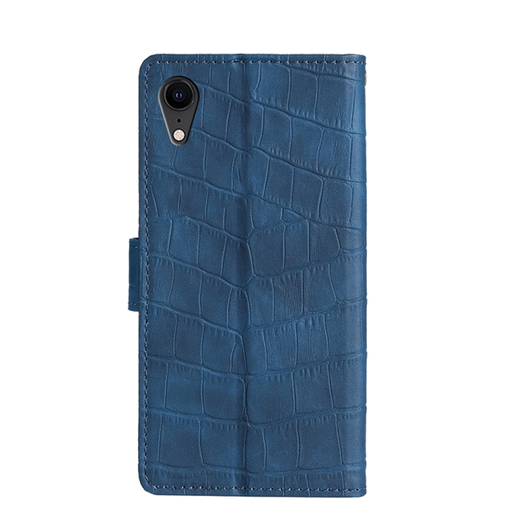 Funda para iPhone Xr Cuero de Pu Textura Cocodrilo Cierre Magnético Tapa Horizontal Soporte Ranuras Tarjetas Billetera (Azul)