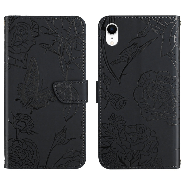 Funda de Cuero para iPhone Xr Skin Feel Butterfly Peony en Relieve (Negro)