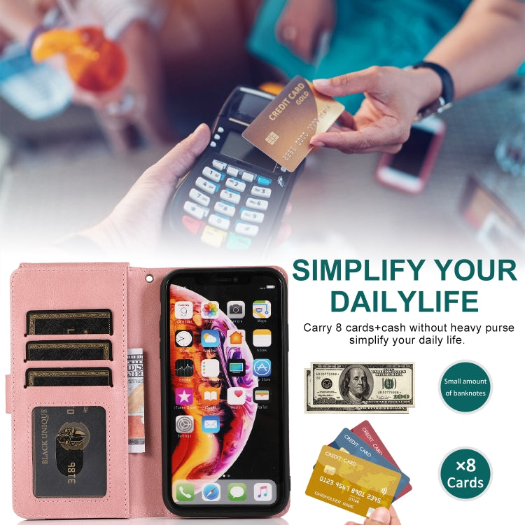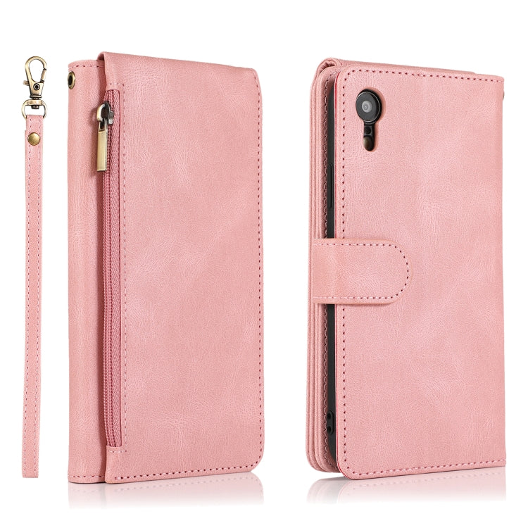 Funda para iPhone Xr Skin-Feel Crazy Horse Texture Zipper Wallet Bag Estuche de Cuero con Tapa Horizontal con Soporte y Ranuras para Tarjetas y Billetera y Cordón (Oro Rosa)