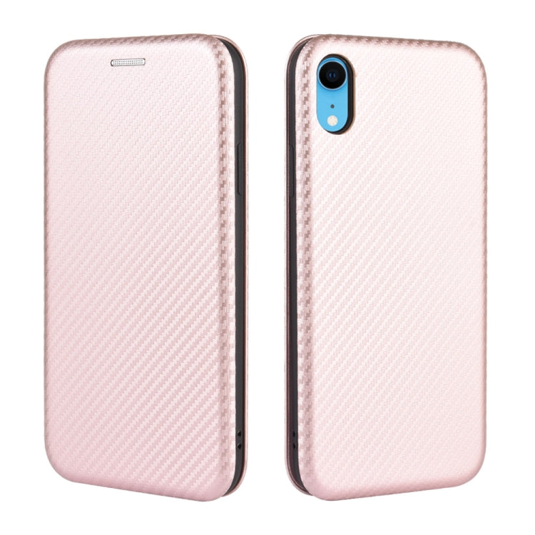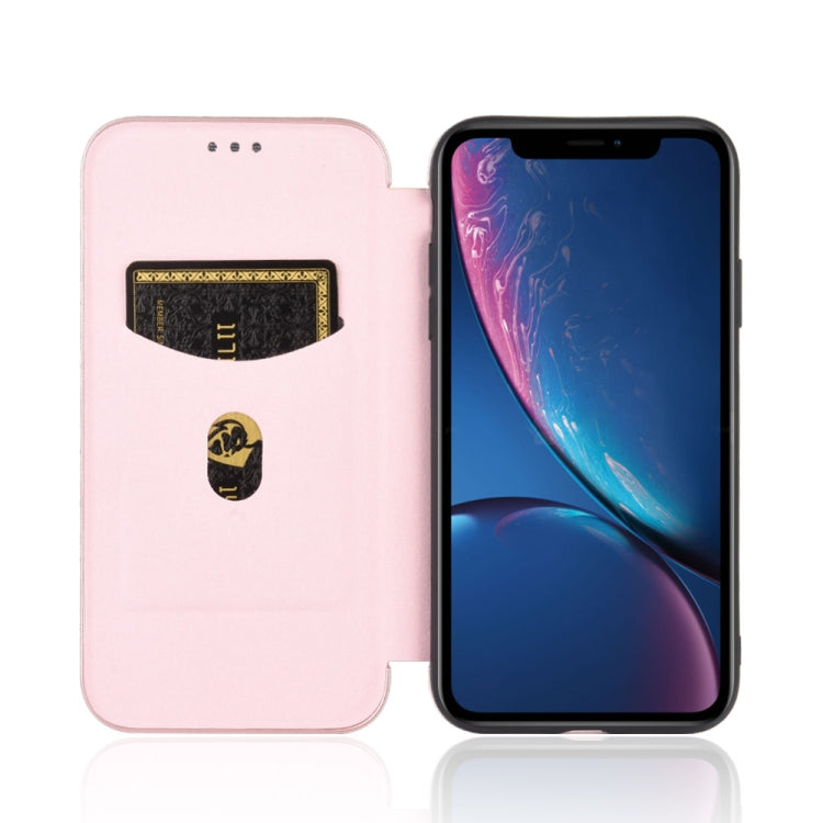 Funda para iPhone Xr Textura Fibra de Carbono Flip Horizontal TPU PC Cuero Pu con Ranura para Tarjeta (Rosa)