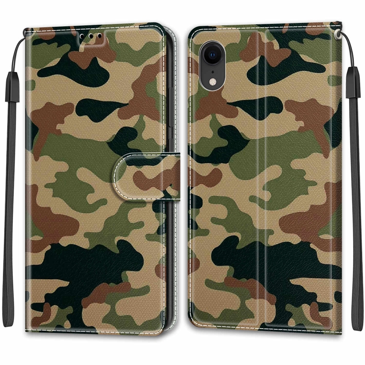 Funda para iPhone Xr Voltaje Dibujo Coloreado Cierre Magnético Cuero de Pu con Tapa Horizontal Soporte Ranuras para Tarjetas (Camuflaje Amarillo Verde)