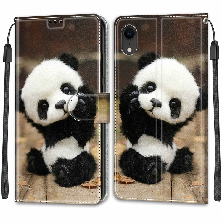 Funda para iPhone Xr Voltaje Dibujo Cierre Magnético Cuero PU Tapa Horizontal Soporte Ranuras para Tarjetas (Panda de Tablero de Madera C18)