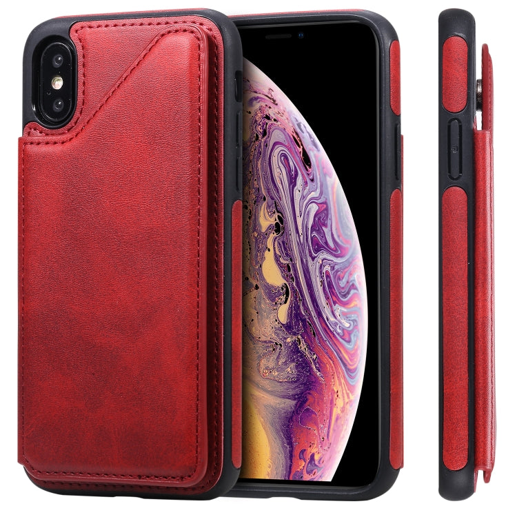 Funda Protectora para iPhone Xs con Textura de Pantorrilla, Soporte, Ranuras para Tarjetas y Marco (Rojo)