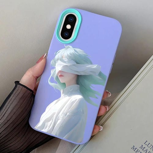 Funda híbrida para iPhone Xs Max Blindfold Girl PC y TPU (Púrpura)